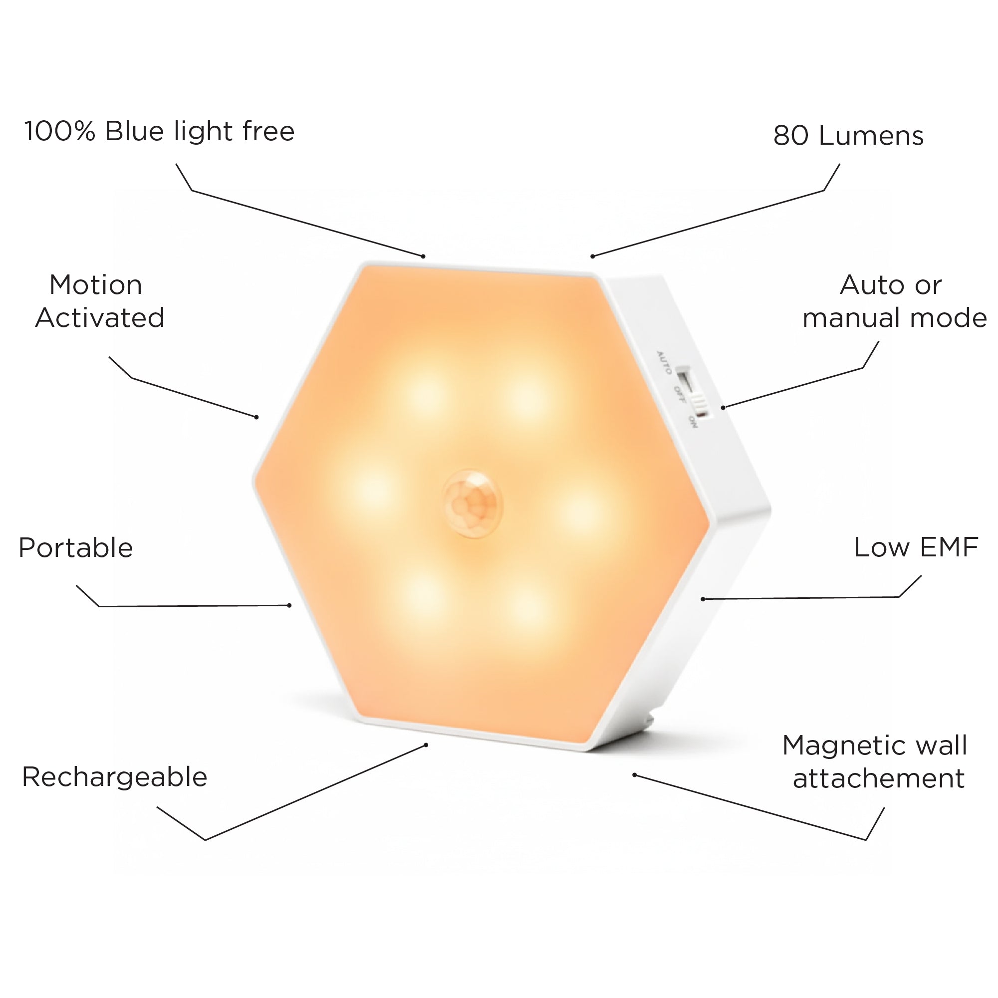 The Red Night Light is optimized for maximum sleep quality, providing a very dim red light that is best for navigating dark spaces without disrupting your rest. The Amber Night Light provides a slightly brighter, warmer amber glow, making it a great option for reading or tasks where you need a little more visibility without a jarring light.